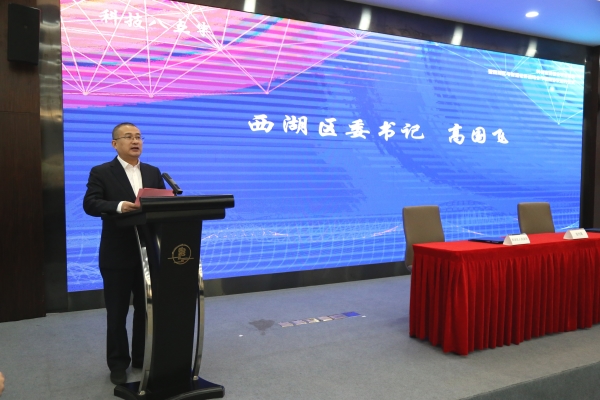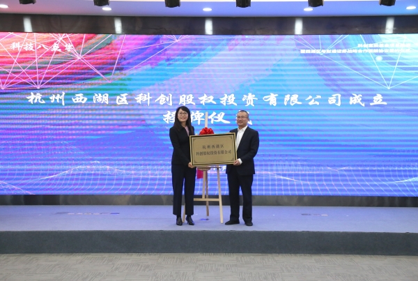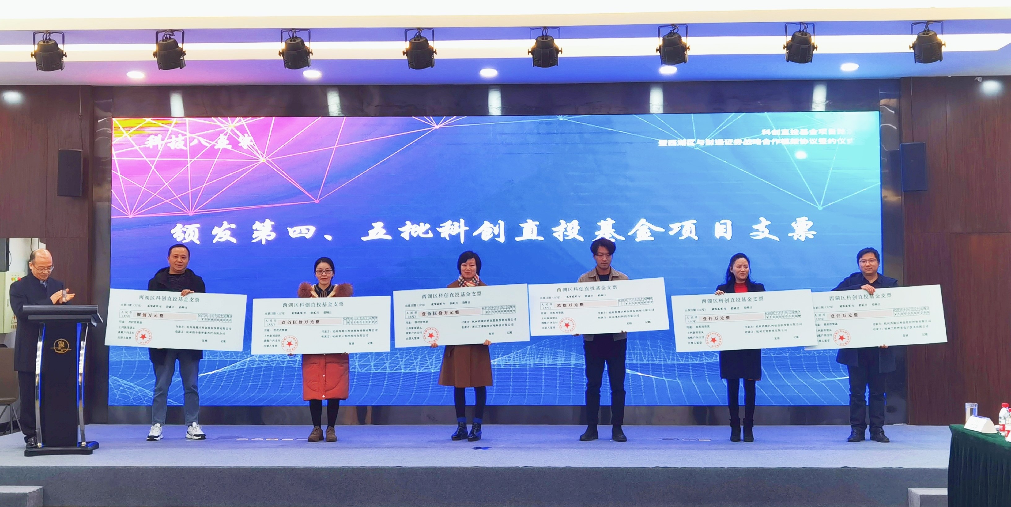 天寬副總徐宏上臺(tái)領(lǐng)取西湖區(qū)科創(chuàng)直投基金支票