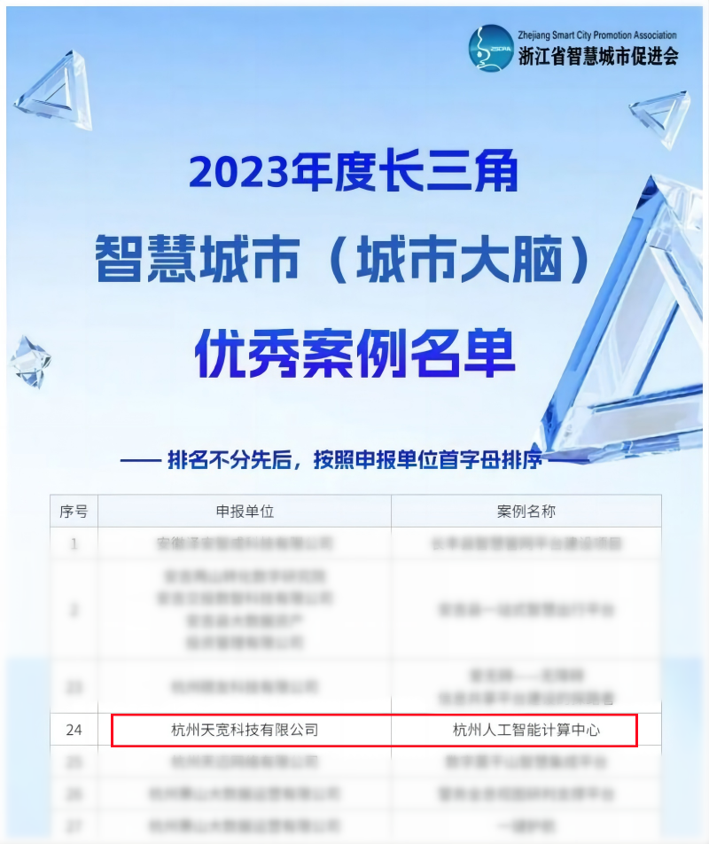 近日,由浙江省智慧城市促進(jìn)會聯(lián)合浙大城市學(xué)院及滬、皖、蘇多地協(xié)會共同舉辦的“2023年度長三角智慧城市(城市大腦)優(yōu)秀案例征集評選活動”圓滿落幕,歷經(jīng)嚴(yán)格的評審共甄選出87個展現(xiàn)長三角數(shù)字治理現(xiàn)代化成就的杰出案例。公司憑借在人工智能基礎(chǔ)設(shè)施建設(shè)領(lǐng)域的深厚積淀和技術(shù)實力,承建和運營的“杭州人工智能計算中心”項目入選優(yōu)秀案例,成為引領(lǐng)長三角智能化發(fā)展、賦能產(chǎn)業(yè)革新的重要數(shù)字驅(qū)動力。