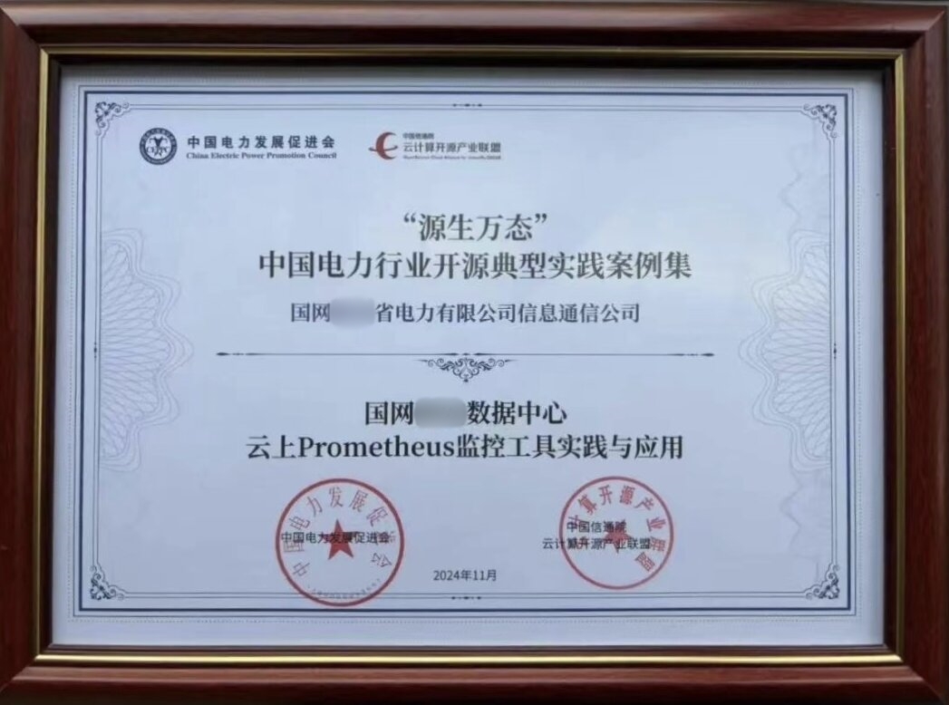經(jīng)過專家層層篩選、多方論證,天寬助力電力客戶創(chuàng)新成果《國網(wǎng)某地數(shù)據(jù)中心云上Prometheus監(jiān)控工具實踐與應(yīng)用》在眾多參選案例中脫穎而出,成功入選“源生萬態(tài)”中國電力行業(yè)開源典型實踐案例集。