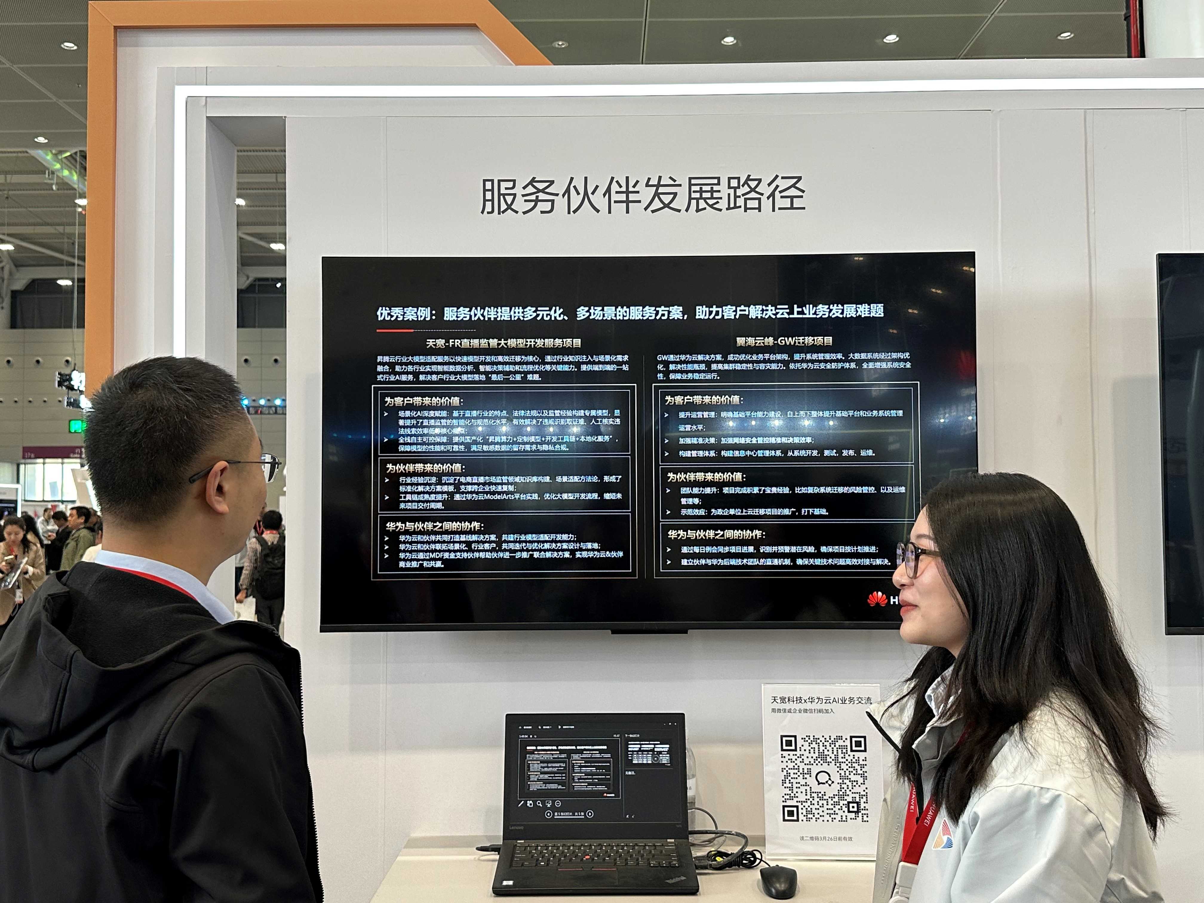 大會期間,天寬在華為云盤古大模型展區(qū)和華為云服務(wù)展臺全面展示了基于昇騰的行業(yè)大模型及創(chuàng)新解決方案,受到觀展嘉賓的熱烈關(guān)注,并與參會嘉賓就算力建設(shè)、模型遷移、AI行業(yè)模型落地等行業(yè)前沿話題進行深入的交流與探討。