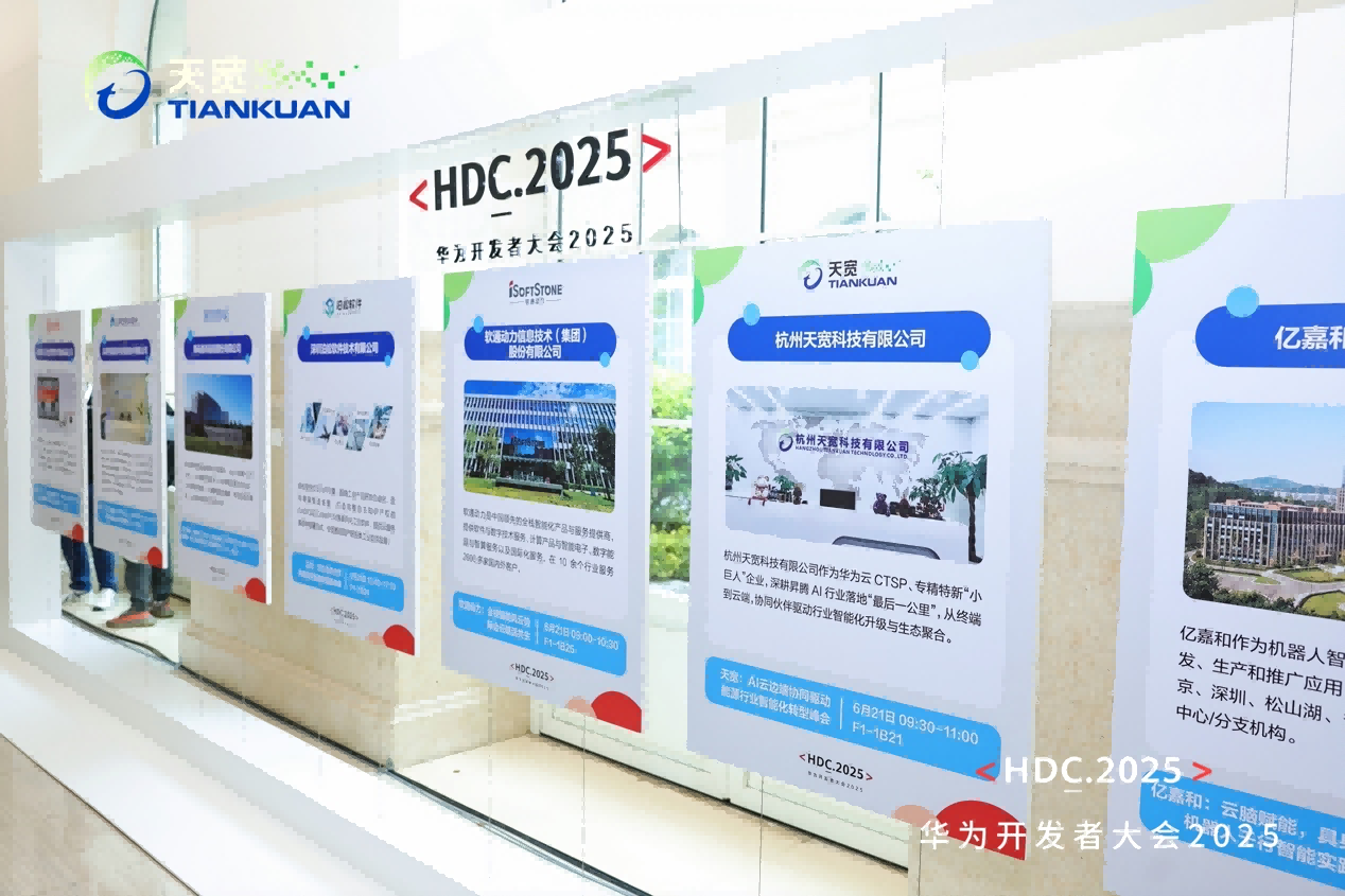 2025年6月20日至22日,華為開發(fā)者大會 HDC·2025在東莞松山湖盛大舉行。這場由華為云主辦的年度盛會,匯聚了全球開發(fā)者、生態(tài)伙伴與行業(yè)先鋒,聚焦技術趨勢、產(chǎn)業(yè)落地與生態(tài)協(xié)同,是業(yè)內(nèi)公認的AI與云計算領域最具前瞻性與影響力的科技盛事,同時受到行業(yè)外科技觀察者和咨詢分析界廣泛關注。天寬作為大會云鉆合作伙伴亮相,并承辦AI云邊端協(xié)同驅動行業(yè)智能化轉型專題論壇。