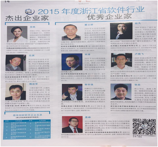 熱烈祝賀我司榮膺“2015年度浙江最佳創(chuàng)新軟件企業(yè)”稱號